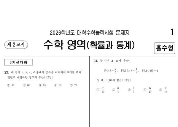 수능 수학 '확통 1등급' 급증, '문과생의 부활' 아닌 '이과생 확통런' 통계 착시 - 교육을 비추다 [교육을 비추다 기자] 페이지 정보 작성자 동구진로진학지원센터 (221.♡.19.66) 댓글 0건 조회 5회 작성일 25-11-19 10:23 본문 https://www.kyobit.com/news/articleView.html?idxno=2401수능 수학 '확통 1등급' 급증, '문과생의 부활' 아닌 '이과생 확통런' 통계 착시 - 교육을 비추다[교육을 비추다 기자]2026학년도 대학수학능력시험(수능) 가채점 결과, 수학 1등급 내 '확률과 통계' 선택자 비중이 20.7%로 급증했다는 분석이 나왔다. 표www.kyobit.com글 옵션 목록 댓글목록 댓글목록 등록된 댓글이 없습니다.
